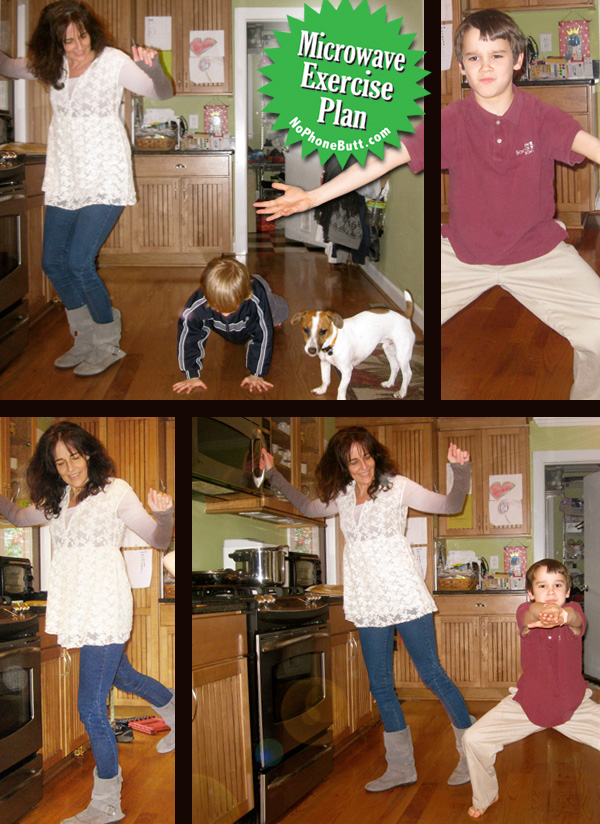 The next time you are microwaving something up, Stop, Drop, In-a-Squat, at home or at work (hey, you could start a trend.) Try it out for a day. Continuous squats, lunges, leg lifts, donkey kicks, push-ups, or sit-ups, up until the bell sound. I’m not suggesting this as your only exercise plan forever, but it did get me in a good habit of doing some muscle work every day. The kids have even taken to it. (At first, I’m sure they thought, “What’s wrong with Mom?”)  Now, when I start microwaving, they think it’s a dance party.